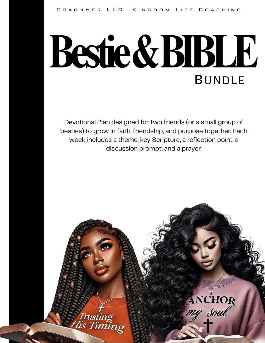 Devotional Plan designed for two friends (or a small group of besties) to grow in faith, friendship, and purpose together. Each week includes a theme, key Scripture, a reflection point, a discussion prompt, and a prayer.